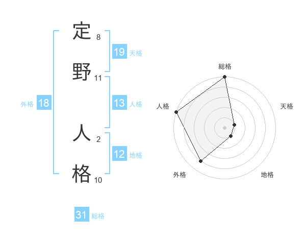 定野 人格さんの総格は31画の5点!