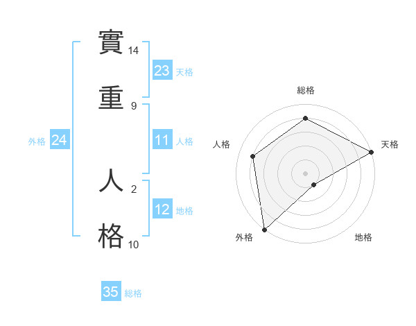 實重 人格さんの天格は23画の5点!