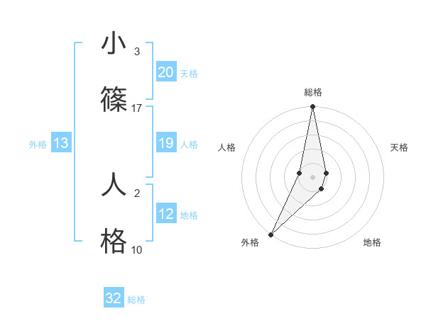 小篠 人格さんの外格は13画の5点!