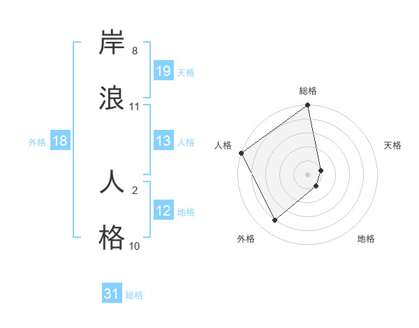 岸浪 人格さんを姓名の画数から五運を鑑定