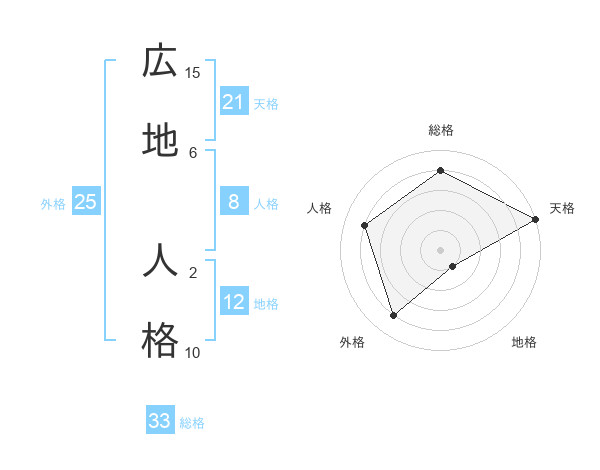 広地 人格さんの天格は21画の5点!