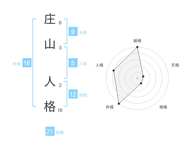 庄山 人格さんの総格は21画の5点!