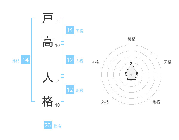 戸高 人格さんの総格は26画の2点!