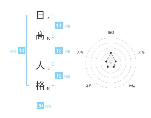 日髙 人格さんの総格は26画の2点!
