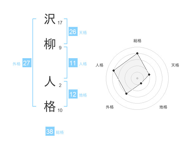 沢柳 人格さんの総格は38画の4点!