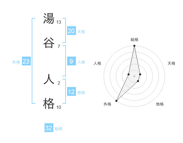 湯谷 人格さんを姓名の画数から五運を鑑定
