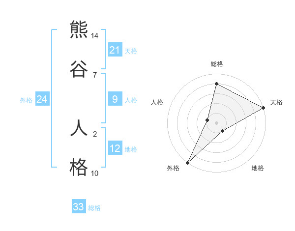 熊谷 人格さんを姓名の画数から五運を鑑定