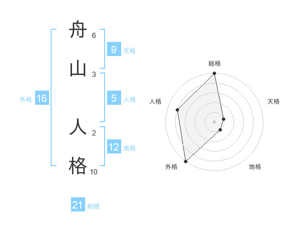 舟山 人格さんの総格は21画の5点!