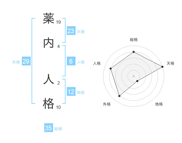薬内 人格さんの天格は23画の5点!