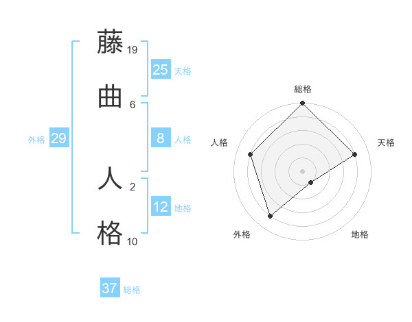 藤曲 人格さんの総格は37画の5点!