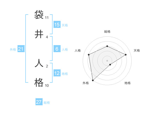 袋井 人格さんの総格は27画の3点!