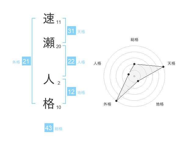 速瀬 人格さんを姓名の画数から五運を鑑定