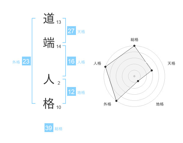 道端 人格さんの総格は39画の5点!