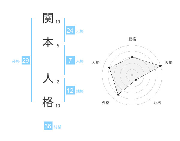 関本 人格さんの外格は29画の4点!
