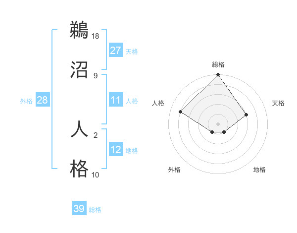 鵜沼 人格さんの総格は39画の5点!