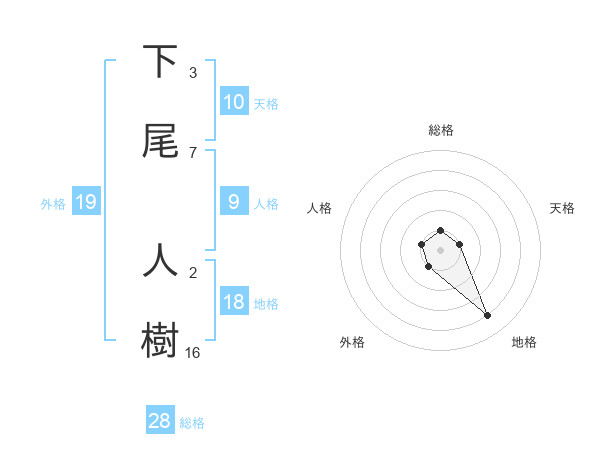 下尾 人樹さんを姓名の画数から五運を鑑定