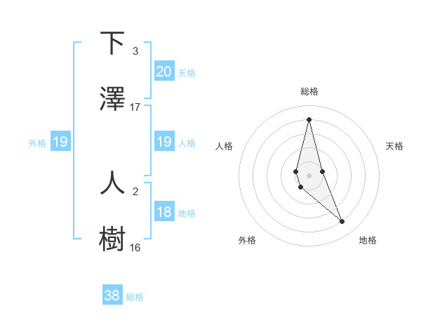 下澤 人樹さんを姓名の画数から五運を鑑定