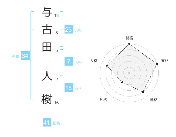 与古田 人樹さんの天格は23画の5点!