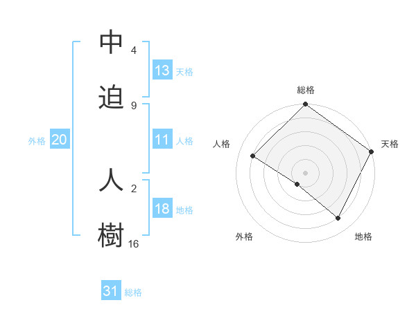 中迫 人樹さんの天格は13画の5点!