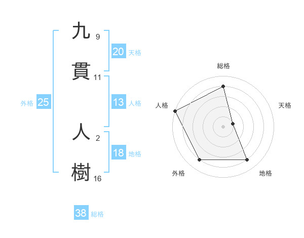 九貫 人樹さんの総格は38画の4点!