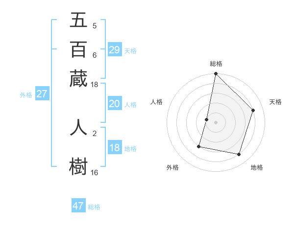 五百蔵 人樹さんを姓名の画数から五運を鑑定