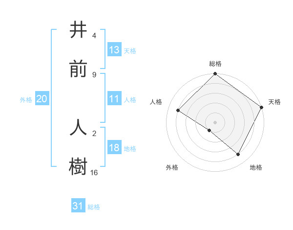 井前 人樹さんを姓名の画数から五運を鑑定