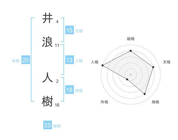 井浪 人樹さんの総格は33画の4点!