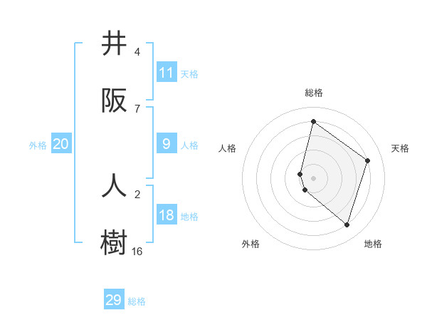 井阪 人樹さんの総格は29画の4点!