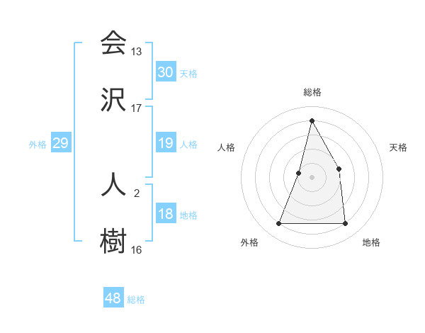 会沢 人樹さんを姓名の画数から五運を鑑定