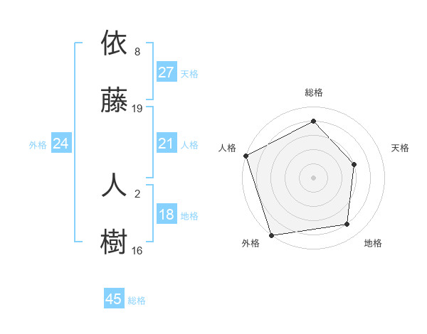 依藤 人樹さんの総格は45画の4点!