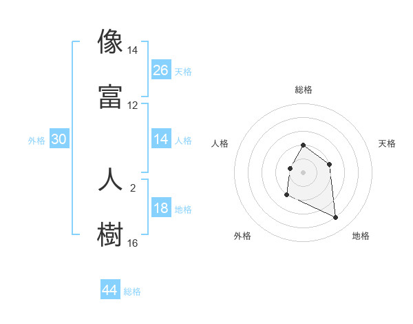 像富 人樹さんの総格は44画の2点!