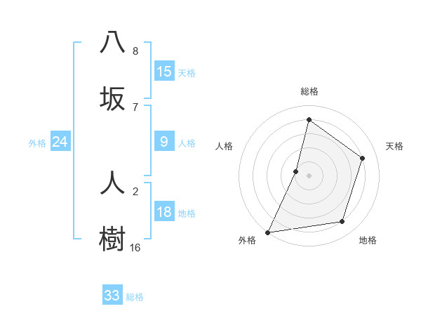 八坂 人樹さんを姓名の画数から五運を鑑定
