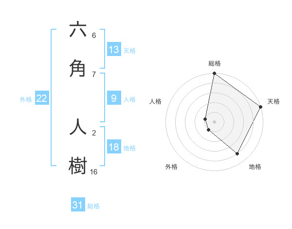 六角 人樹さんの総格は31画の5点!