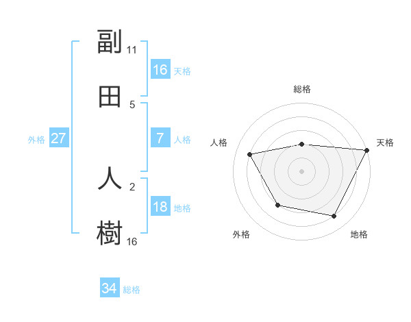 副田 人樹さんの総格は34画の2点!