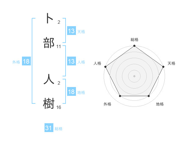 卜部 人樹さんを姓名の画数から五運を鑑定