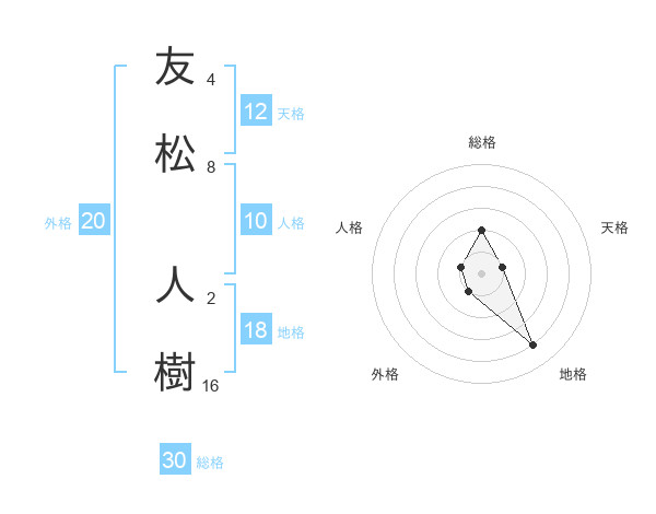 友松 人樹さんの総格は30画の2点!