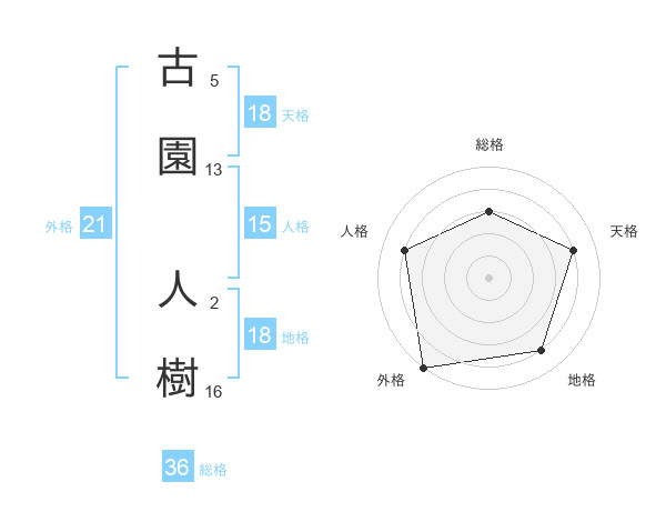古園 人樹さんを姓名の画数から五運を鑑定