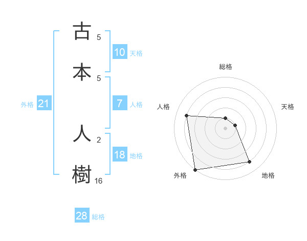 古本 人樹さんの外格は21画の5点!