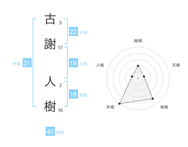 古謝 人樹さんを姓名の画数から五運を鑑定