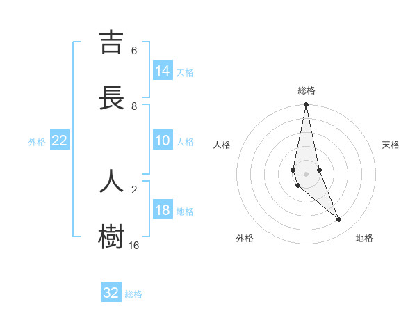 吉長 人樹さんの総格は32画の5点!