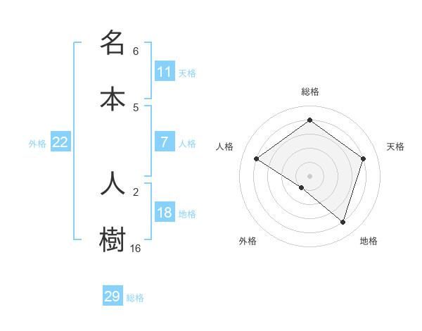 名本 人樹さんの総格は29画の4点!
