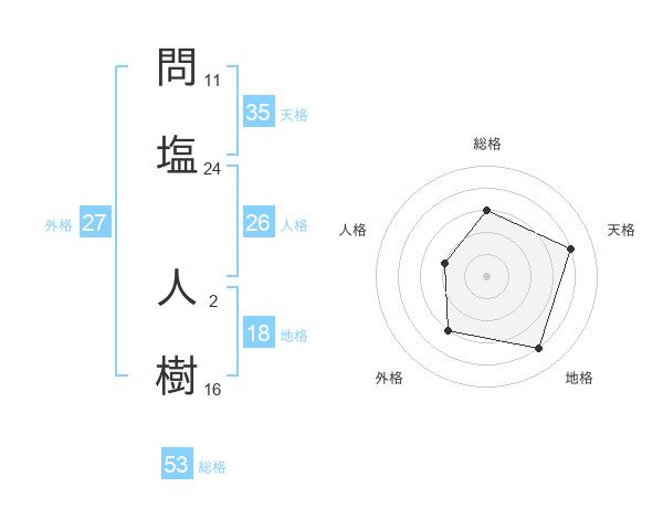 問塩 人樹さんの総格は53画の3点!