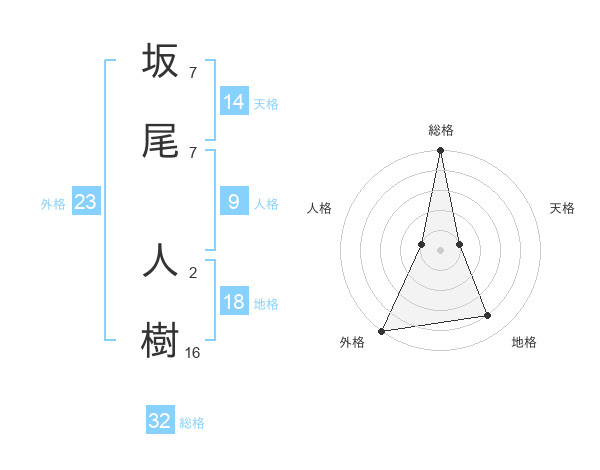 坂尾 人樹さんの総格は32画の5点!