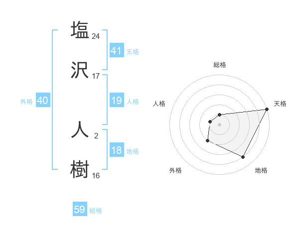 塩沢 人樹さんの天格は41画の5点!