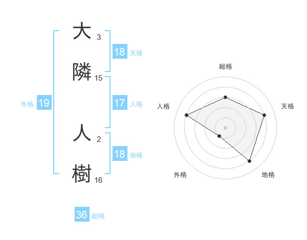 大隣 人樹さんを姓名の画数から五運を鑑定