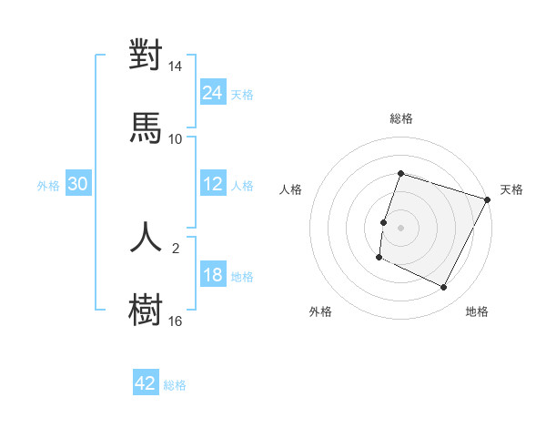 對馬 人樹さんの天格は24画の5点!