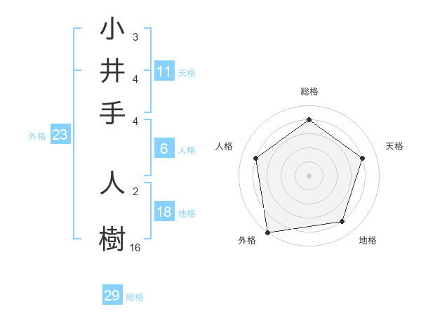 小井手 人樹さんの総格は29画の4点!