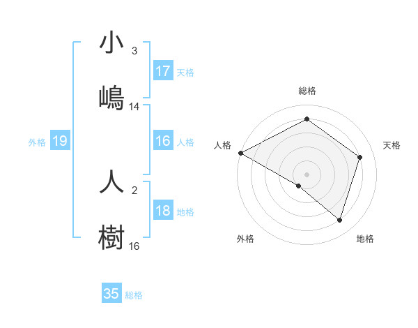 小嶋 人樹さんの総格は35画の4点!