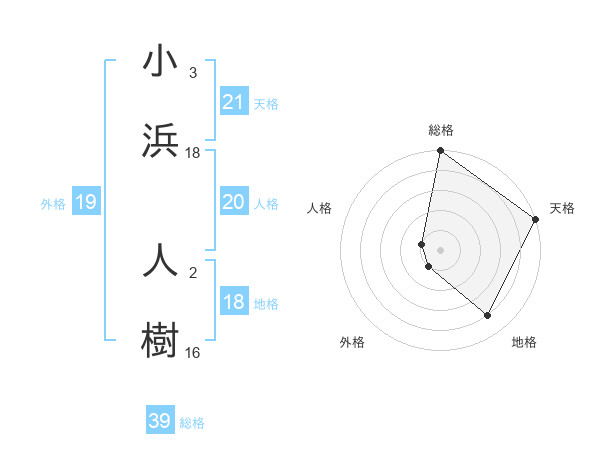 小浜 人樹さんを姓名の画数から五運を鑑定