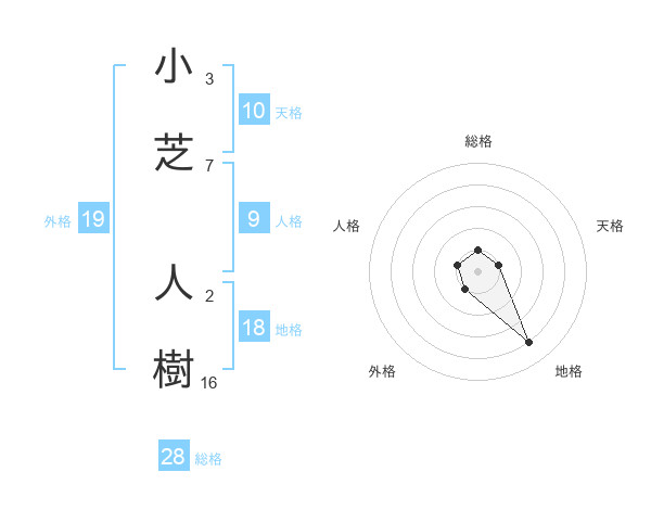 小芝 人樹さんの総格は28画の1点!